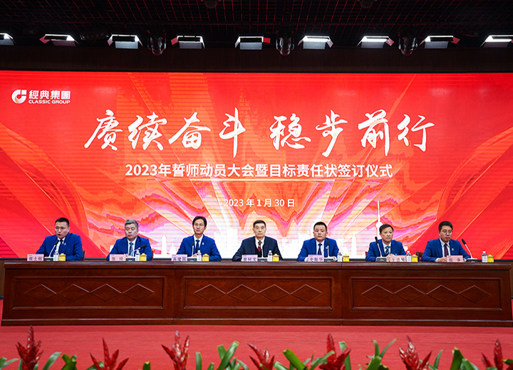 賡續(xù)奮斗 穩(wěn)步前行 經(jīng)典集團(tuán)2023年誓師動(dòng)員大會(huì)暨目標(biāo)責(zé)任狀簽訂儀式召開(kāi)。