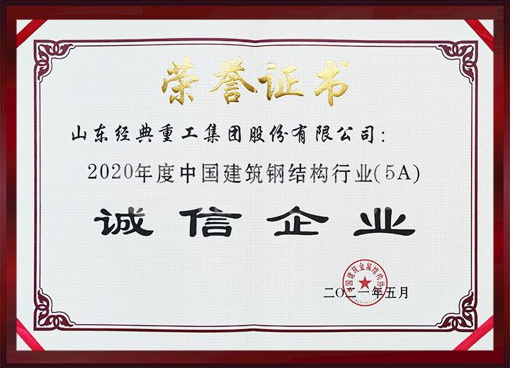 中國(guó)建筑金屬結(jié)構(gòu)協(xié)會(huì)通報(bào)2020年度建筑鋼結(jié)構(gòu)行業(yè)競(jìng)爭(zhēng)力50強(qiáng)企業(yè),公司位列17位;榮獲2020年度中國(guó)建筑鋼結(jié)構(gòu)行業(yè)(5A)誠(chéng)信企業(yè)。