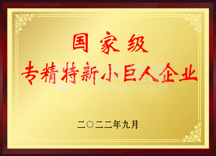 經(jīng)典集團(tuán)入選第四批國(guó)家級(jí)專(zhuān)精特新小巨人企業(yè)。