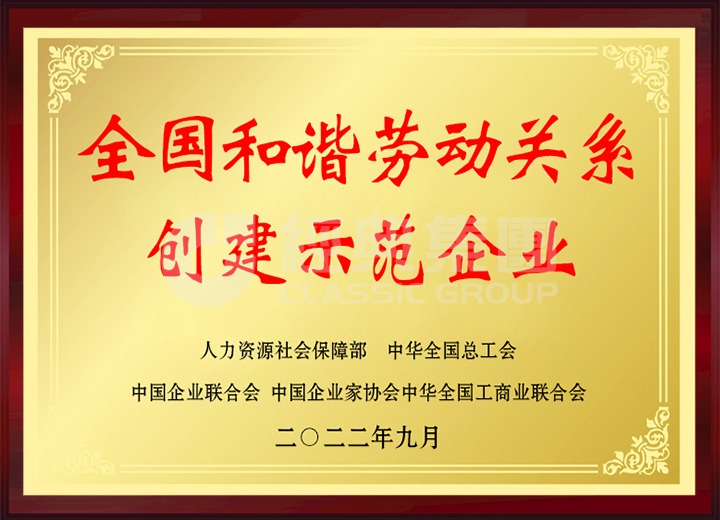 經(jīng)典集團(tuán)入選全國(guó)和諧勞動(dòng)關(guān)系創(chuàng)建示范企業(yè)。