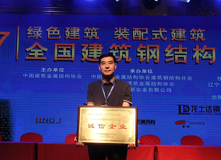 公司榮獲2016年度中國(guó)建筑鋼結(jié)構(gòu)行業(yè)(5A)誠(chéng)信企業(yè)稱(chēng)號(hào)。