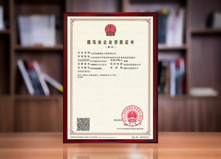 山東經(jīng)典建設(shè)工程有限公司榮升建筑工程施工總承包壹級(jí)資質(zhì)。