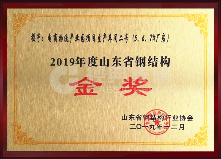 公司榮獲山東省鋼結(jié)構(gòu)金獎(jiǎng)、明星企業(yè)、優(yōu)秀企業(yè)家、優(yōu)秀項(xiàng)目經(jīng)理等獎(jiǎng)項(xiàng)。