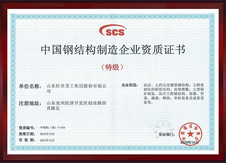 取得中國(guó)鋼結(jié)構(gòu)制造特級(jí)資質(zhì)。