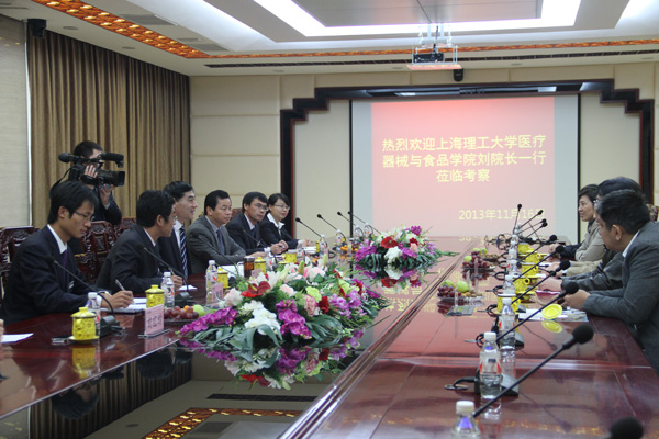 上海理工大學醫(yī)療器械與食品學院劉寶林院長一行5人與集團公司領導合影留念