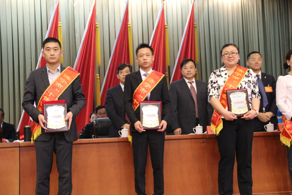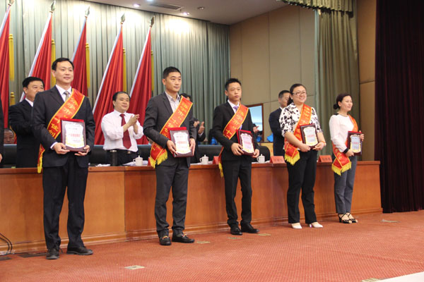 市委領(lǐng)導(dǎo)為周超董事長頒發(fā)獎(jiǎng)牌(中間)