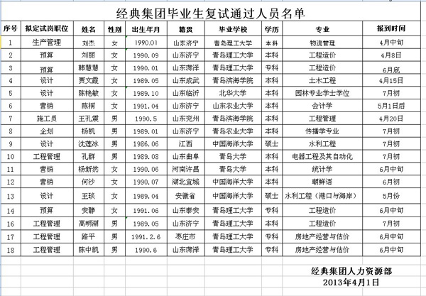 經(jīng)典集團畢業(yè)生復試通過人員名單.xls