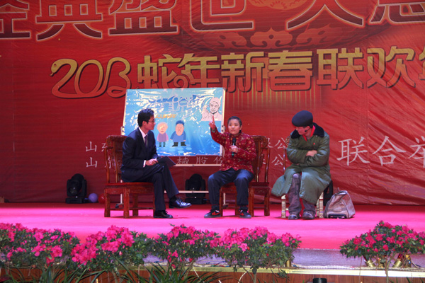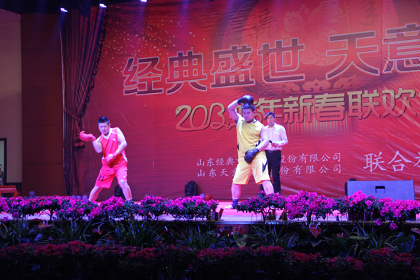 新春年會在激揚的音樂聲中拉開帷幕,全體家人盛裝出席,走過紅地毯,主持人生動的開場白把大家?guī)肓藲g樂的海洋。傾情演唱的歌手、熱血沸騰的旋律、積極互動的觀眾、一次又一次把聯(lián)歡年會的氣氛推向高潮。開場舞《和諧中國》,異國風(fēng)情舞蹈《青花瓷》,別出心裁的小品《拳王爭霸賽》、《白云、黑土后傳》等等,盛情展現(xiàn)了經(jīng)典員工的多才多藝和敢于挑戰(zhàn)的熱情;聲情并茂的相聲、經(jīng)典說唱、小品等等引來陣陣歡笑聲;《經(jīng)典之歌—讓愛傳承》更是唱出了每位員工的心聲。全部節(jié)目均由大家自編自演,年會的精彩演出和演出效果真實的展現(xiàn)了全公司員工的團(tuán)結(jié)力量和熱血激情,贏得了到場觀眾的熱烈掌聲。