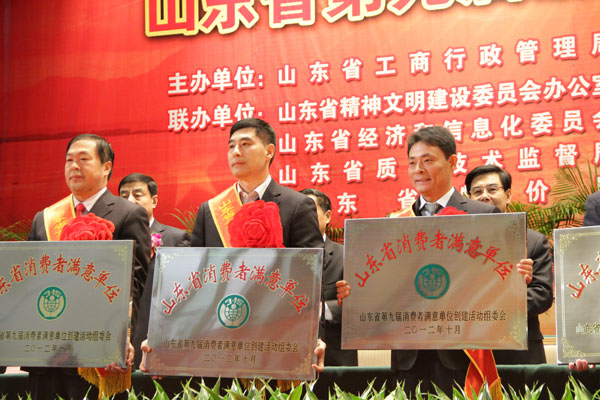 12月2日-4日,經(jīng)典集團(tuán)公司董事長(zhǎng)苗樹文代表公司參加了由省消協(xié)、省工商局等部門舉辦的“山東省第九屆消費(fèi)者滿意單位”的表彰大會(huì)。我公司喜獲“山東省第九屆消費(fèi)者滿意單位”榮譽(yù)稱號(hào),該榮譽(yù)的獲得充分體現(xiàn)了廣大消費(fèi)者對(duì)我公司整體服務(wù)的肯定與認(rèn)可。