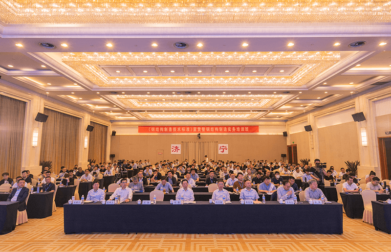 中國(guó)鋼結(jié)構(gòu)協(xié)會(huì)常務(wù)副會(huì)長(zhǎng)劉毅、中國(guó)寶武集團(tuán)首席專家賀明玄、金環(huán)建設(shè)集團(tuán)有限公司總工程師、副總裁張強(qiáng)、中冶建筑研究總院有限公司副總工程師吳耀華、中國(guó)鋼結(jié)構(gòu)協(xié)會(huì)秘書長(zhǎng)李慶偉、副秘書長(zhǎng)戴長(zhǎng)河、山東省鋼結(jié)構(gòu)行業(yè)協(xié)會(huì)會(huì)長(zhǎng)周學(xué)軍、副秘書長(zhǎng)劉哲等領(lǐng)導(dǎo)專家出席活動(dòng),來(lái)自全國(guó)各地鋼結(jié)構(gòu)制造企業(yè)的200余名代表參加培訓(xùn)。