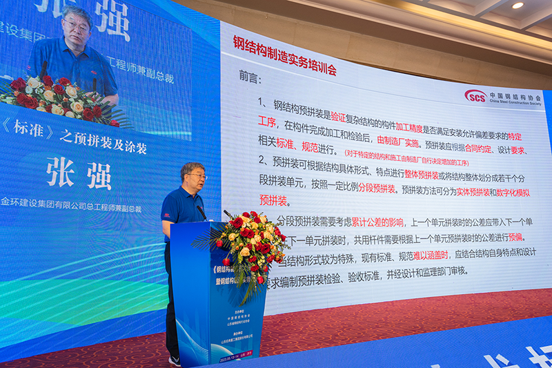 鋼結(jié)構(gòu)加工制造工藝金環(huán)建設(shè)集團(tuán)有限公司總工程師、副總裁張強(qiáng)講授《鋼結(jié)構(gòu)制造技術(shù)標(biāo)準(zhǔn)》預(yù)拼裝、涂裝
