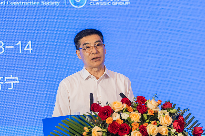 中國(guó)鋼結(jié)構(gòu)協(xié)會(huì)副會(huì)長(zhǎng)、山東省鋼結(jié)構(gòu)行業(yè)協(xié)會(huì)副會(huì)長(zhǎng)、山東經(jīng)典重工集團(tuán)股份有限公司董事會(huì)主席苗樹文致辭