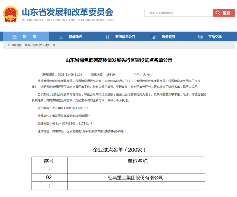 近日,山東省發(fā)展和改革委員會公示了山東省綠色低碳高質(zhì)量發(fā)展先行區(qū)建設試點名單,經(jīng)典集團上榜企業(yè)試點名單。