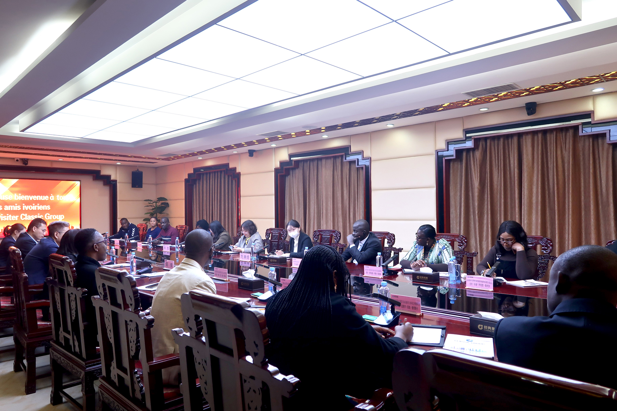 研修班學(xué)員先后參觀了經(jīng)典集團(tuán)凱思諾智能化生產(chǎn)線、中冶智能化生產(chǎn)車間以及高端裝配式建筑集成房屋項(xiàng)目,親眼見證了智能制造的魅力與高效。隨后的座談會(huì)上,張琦對(duì)遠(yuǎn)道而來(lái)的研修班學(xué)員表示誠(chéng)摯歡迎,分享了集團(tuán)發(fā)展歷程、生產(chǎn)經(jīng)營(yíng)、企業(yè)文化建設(shè)等情況,著重闡述了集團(tuán)產(chǎn)業(yè)布局和對(duì)外貿(mào)易情況。研修班成員對(duì)經(jīng)典集團(tuán)裝配式建筑集群規(guī)模及對(duì)外貿(mào)易合作的廣泛影響力給予了高度評(píng)價(jià),對(duì)集團(tuán)的智能制造技術(shù)和卓越產(chǎn)品品質(zhì)表達(dá)了由衷的贊賞與認(rèn)同,并表達(dá)了未來(lái)深化交流、共促科特迪瓦建筑鋼結(jié)構(gòu)行業(yè)發(fā)展的美好愿景,共謀互利共贏的未來(lái)。