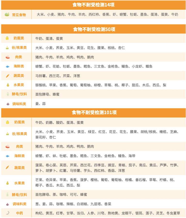 ? ? ? 對包括奶蛋類、海鮮、蔬菜、水果、谷物、酵母/飲料、調(diào)味品、中藥在內(nèi)的中國人食譜中經(jīng)常出現(xiàn)的食物進行IgG抗體檢測(食物不耐受檢測),并依據(jù)檢測結(jié)果,為受檢者制定最適合他/她的飲食方案,依據(jù)方案調(diào)整飲食習慣,便能在3~6個月內(nèi)有效改善甚至消除慢性疾病癥狀,從而提高受檢者的生活質(zhì)量。?