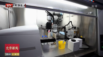 配套的車載式全集成新冠檢測移動(dòng)實(shí)驗(yàn)室,接通220V民用電即可正常工作,同時(shí)它自身配備發(fā)電系統(tǒng)。采樣可以通過全自動(dòng)機(jī)械手和人工采樣兩種方式,病毒滅活、核酸分析都無需人工干預(yù)自動(dòng)完成。操作人員只需要做一個(gè)動(dòng)作,就是用移液槍將滅活后的樣本加入到芯片里封閉,放入全自動(dòng)微流控核酸分析儀中進(jìn)行檢測,45分鐘便會(huì)自動(dòng)顯示結(jié)果。