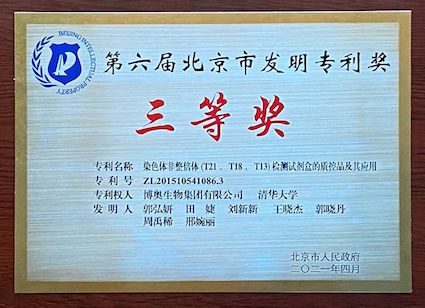 喜訊 | 博奧生物“染色體非整倍體(T21、T18、T13)檢測試劑盒的質(zhì)控品及其應用”榮獲第六屆北京市發(fā)明專利獎三等獎