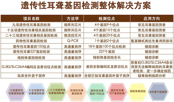 博奧晶典遺傳性耳聾相關(guān)基因檢測(cè)芯片的不斷升級(jí)迭代,有助于篩查出更多環(huán)境因素致聾基因變異的人群,盡早為其提供生活指導(dǎo),降低后天不良環(huán)境因素導(dǎo)致耳聾發(fā)生的風(fēng)險(xiǎn),早診斷、早干預(yù)、早治療。目前,博奧晶典已推出基于微陣列芯片、微流控芯片及高通量測(cè)序平臺(tái)一系列產(chǎn)品及服務(wù),包括:九項(xiàng)遺傳性耳聾基因檢測(cè)、十五項(xiàng)遺傳性耳聾基因檢測(cè)、二十三項(xiàng)遺傳性耳聾相關(guān)基因檢測(cè)、藥物性耳聾基因檢測(cè)、遺傳性耳聾基因檢測(cè)(100項(xiàng))、遺傳性耳聾基因檢測(cè)(227個(gè)基因)、線粒體基因組檢測(cè)、全外顯子組基因檢測(cè)等,為孕檢夫婦、新生兒及聽障人群提供最佳的篩查、診斷方案,同時(shí)提供專業(yè)的報(bào)告解讀及后續(xù)遺傳咨詢服務(wù),以實(shí)際行動(dòng)全面助力耳聾三級(jí)防控,減少聾兒的發(fā)生。