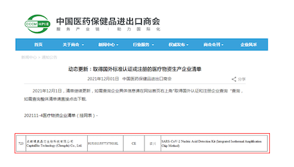 近日,作為博奧晶典抗疫明星產(chǎn)品,新型冠狀病毒2019-nCoV核酸檢測試劑盒(全集成碟式芯片法)英文名稱:SARS-CoV-2 Nucleic Acid Detection Kit (Integrated Isothermal Amplification Chip Method)入選商務(wù)部出口白名單。同期,博奧晶典全集成新冠病毒核酸檢測芯片也在中國醫(yī)藥保健品進(jìn)出口商會官網(wǎng)公布的《取得國外標(biāo)準(zhǔn)認(rèn)證或注冊的醫(yī)療物資生產(chǎn)企業(yè)清單》(俗稱白名單)中亮相。在全球疫情持續(xù)重壓、變異新毒株奧密克戎(Omicron)極速蔓延的當(dāng)下,全集成新冠病毒核酸檢測芯片的加入,有效支持了國際社會共同應(yīng)對全球公共危機(jī),博奧晶典也將持續(xù)助力全球新冠肺炎疫情防控工作,為公眾健康保駕護(hù)航。