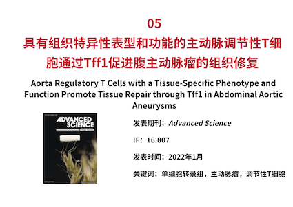 除了維持免疫耐受外,F(xiàn)oxp3+ 調(diào)節(jié)性 T 細(xì)胞 (Tregs) 在組織穩(wěn)態(tài)和重塑中發(fā)揮特殊作用。然而,動(dòng)脈瘤中的 Tregs 是否具有組織特異性的表型和功能尚不清楚。本研究中發(fā)現(xiàn)了一組特殊的可能抑制腹主動(dòng)脈瘤(AAA)進(jìn)展的 Tregs,并對(duì)其進(jìn)行了功能表征。主動(dòng)脈 Tregs 在 AAA 進(jìn)展中逐漸增加,主要來自外周循環(huán)。單細(xì)胞 TCR 測序和批量 RNA 測序顯示了它們獨(dú)特的表型和高表達(dá) Tff1。利用 Foxp3cre/creTff1flox/flox小鼠研究 AAA 中 Tff1 的作用,發(fā)現(xiàn)主動(dòng)脈 Tregs 分泌 Tff1 以調(diào)節(jié)平滑肌細(xì)胞 (SMC) 的存活。體外實(shí)驗(yàn)證實(shí) Tff1 通過細(xì)胞外信號(hào)調(diào)節(jié)激酶(ERK)1/2途徑抑制平滑肌細(xì)胞凋亡。這些發(fā)現(xiàn)揭示了主動(dòng)脈 Tregs 的組織特異性表型和功能,并可能為預(yù)防 AAA 提供一種有希望的新方法。