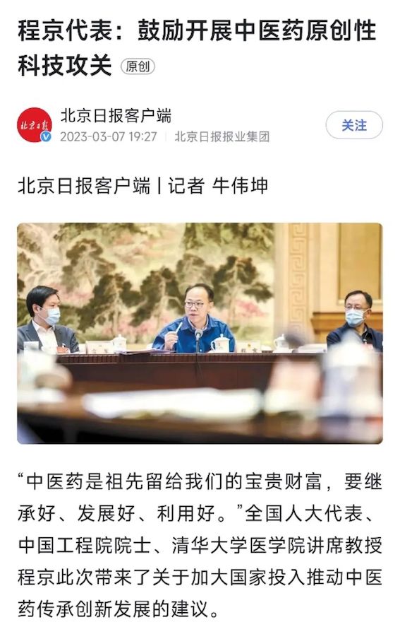 聚焦兩會 | 程京代表:切實(shí)加大中醫(yī)藥國家投入,加快中醫(yī)藥傳承創(chuàng)新發(fā)展