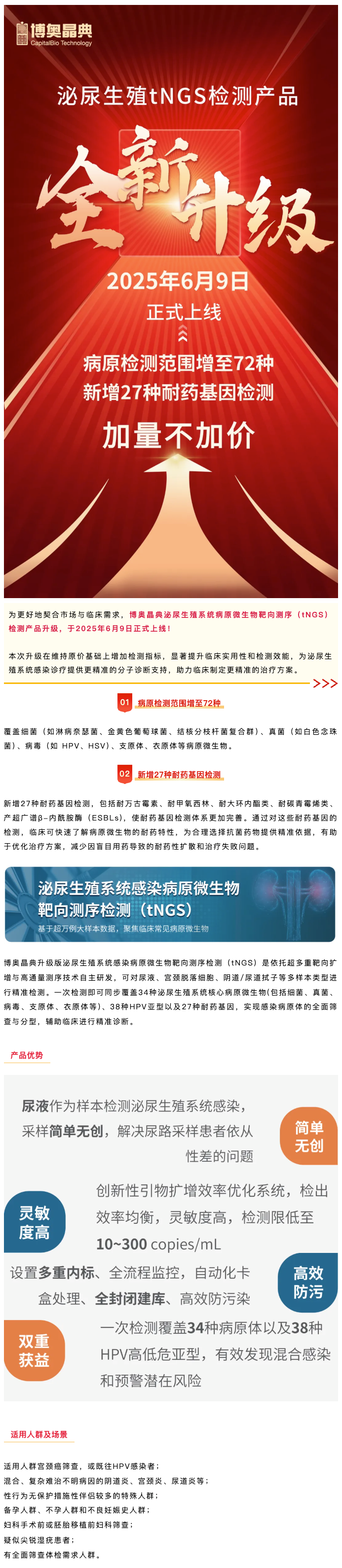 讓診療更精準丨博奧晶典泌尿生殖tNGS檢測產(chǎn)品全新升級!