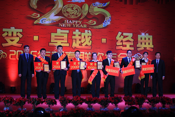 經(jīng)典集團董事長苗樹文發(fā)表了熱情洋溢的講話,簡要回顧了2014年公司取得的成績,鼓舞公司員工精誠團結(jié)、奮發(fā)有為,穩(wěn)步實現(xiàn)2015年公司科學(xué)發(fā)展、創(chuàng)新發(fā)展,并向全體參會人員及家屬致以新年的問候。隆重表彰了2014年涌現(xiàn)出的先進個人和先進集體,營造了人人學(xué)習(xí)先進、人人爭當(dāng)楷模的濃厚氛圍。