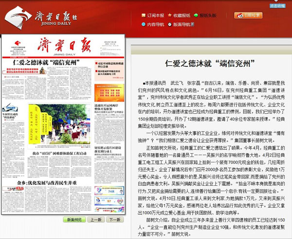 一個以經(jīng)營發(fā)展為頭等大事的工業(yè)企業(yè),緣何對傳統(tǒng)文化和道德講堂“情有獨鐘”?“我們相信仁愛之德會讓企業(yè)獲得厚報。”集團(tuán)董事長苗樹文說。