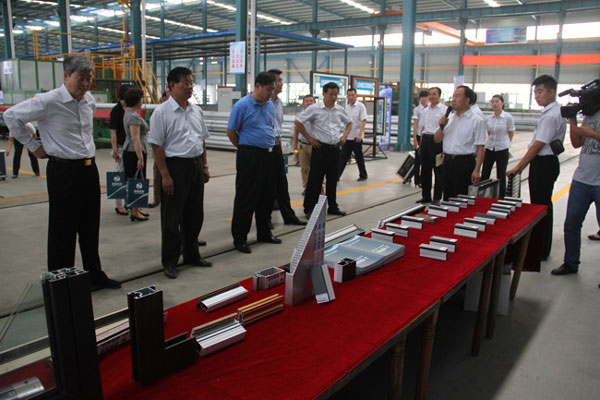 在觀摩會(huì)現(xiàn)場(chǎng),與會(huì)領(lǐng)導(dǎo)首先聽(tīng)取了劉董事長(zhǎng)關(guān)于企業(yè)發(fā)展情況的匯報(bào),隨后深入公司年產(chǎn)10萬(wàn)噸高端鋁型材的生產(chǎn)車間,并現(xiàn)場(chǎng)聽(tīng)取了項(xiàng)目負(fù)責(zé)人的情 況介紹。通過(guò)實(shí)地觀摩和聽(tīng)取匯報(bào),觀摩團(tuán)領(lǐng)導(dǎo)對(duì)我公司能夠按照科學(xué)發(fā)展觀和區(qū)委區(qū)政府關(guān)于跨越發(fā)展的總要求,堅(jiān)持解放思想,抓住機(jī)遇,高點(diǎn)定位,高點(diǎn)建設(shè),開(kāi)拓進(jìn)取,攻堅(jiān)破難,加快發(fā)展的做法給予充分肯定,并對(duì)我公司生產(chǎn)經(jīng)營(yíng)所取得的成績(jī)給予高度評(píng)價(jià)和贊賞。