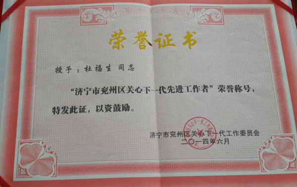 會(huì)上,經(jīng)典集團(tuán)總經(jīng)理杜福生被授予“濟(jì)寧市兗州區(qū)關(guān)心下一代先進(jìn)工作者”,并高度贊揚(yáng)了先進(jìn)工作者情系下一代、無(wú)私奉獻(xiàn)的精神。