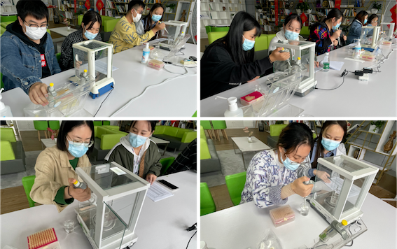 大賽采用理論知識筆試與實際操作相結(jié)合的形式展開,筆試是基礎(chǔ),只有掌握扎實的實驗室規(guī)章制度和管理、生物安全、儀器操作注意事項等基礎(chǔ)知識,才能練就過硬的專業(yè)技能。實操部分將理論與實踐相結(jié)合,考驗實驗員移液器操作技能:分別取3次液體進行稱量,考核移液器使用的重復(fù)性、準確性及儀器操作是否規(guī)范。